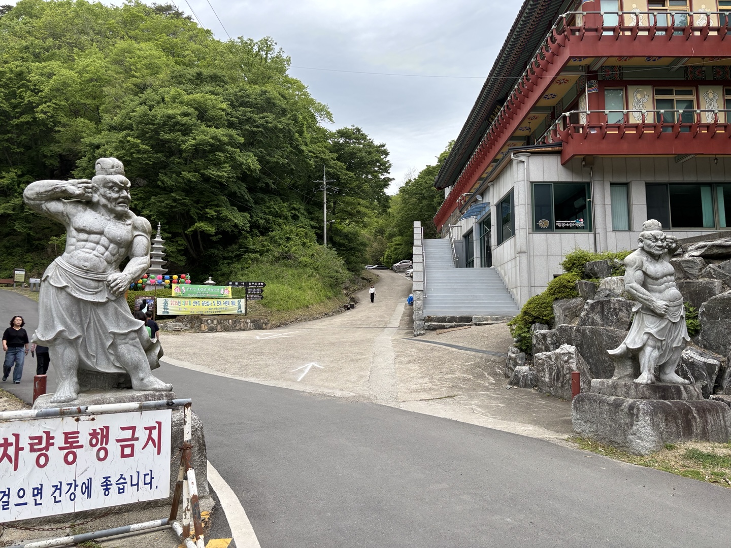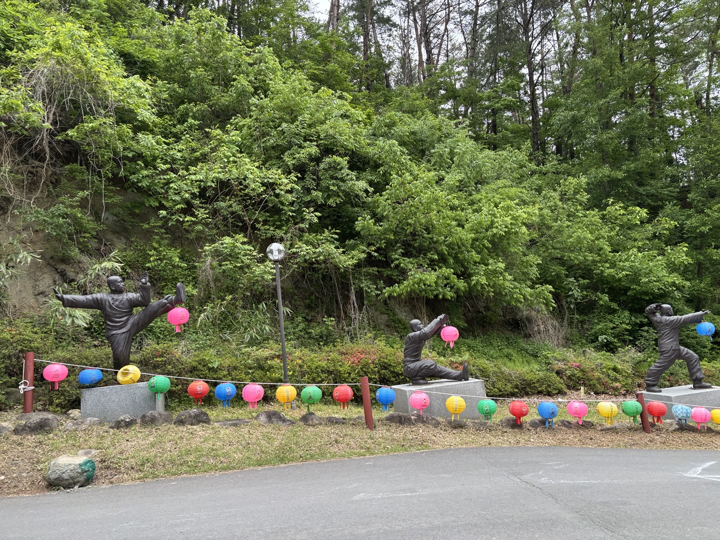 올라가는 길 옆에 선무도 동작을 한 동상들이 있어요