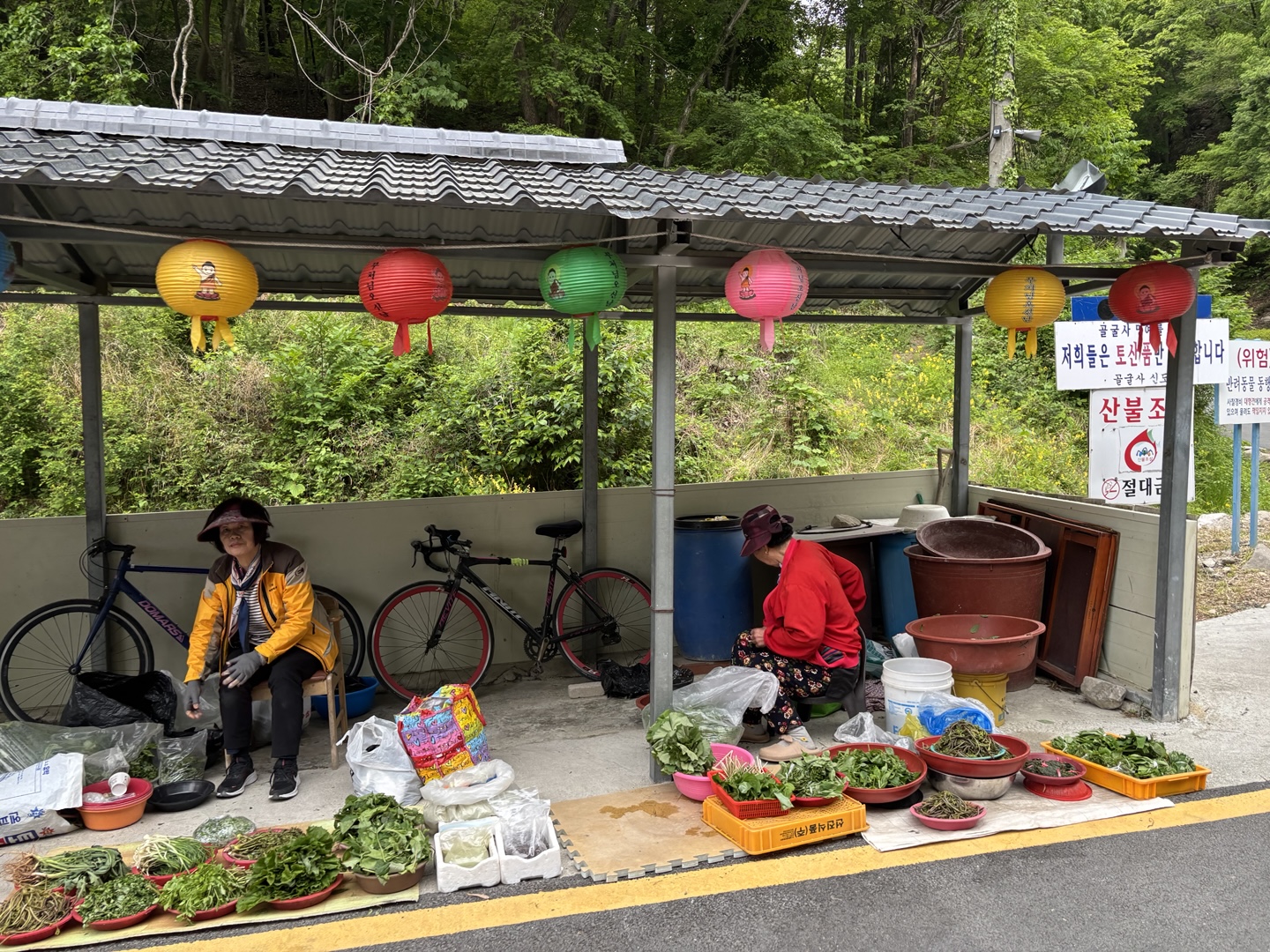 주차장 한 쪽 특산물 판매장에서 이렇게