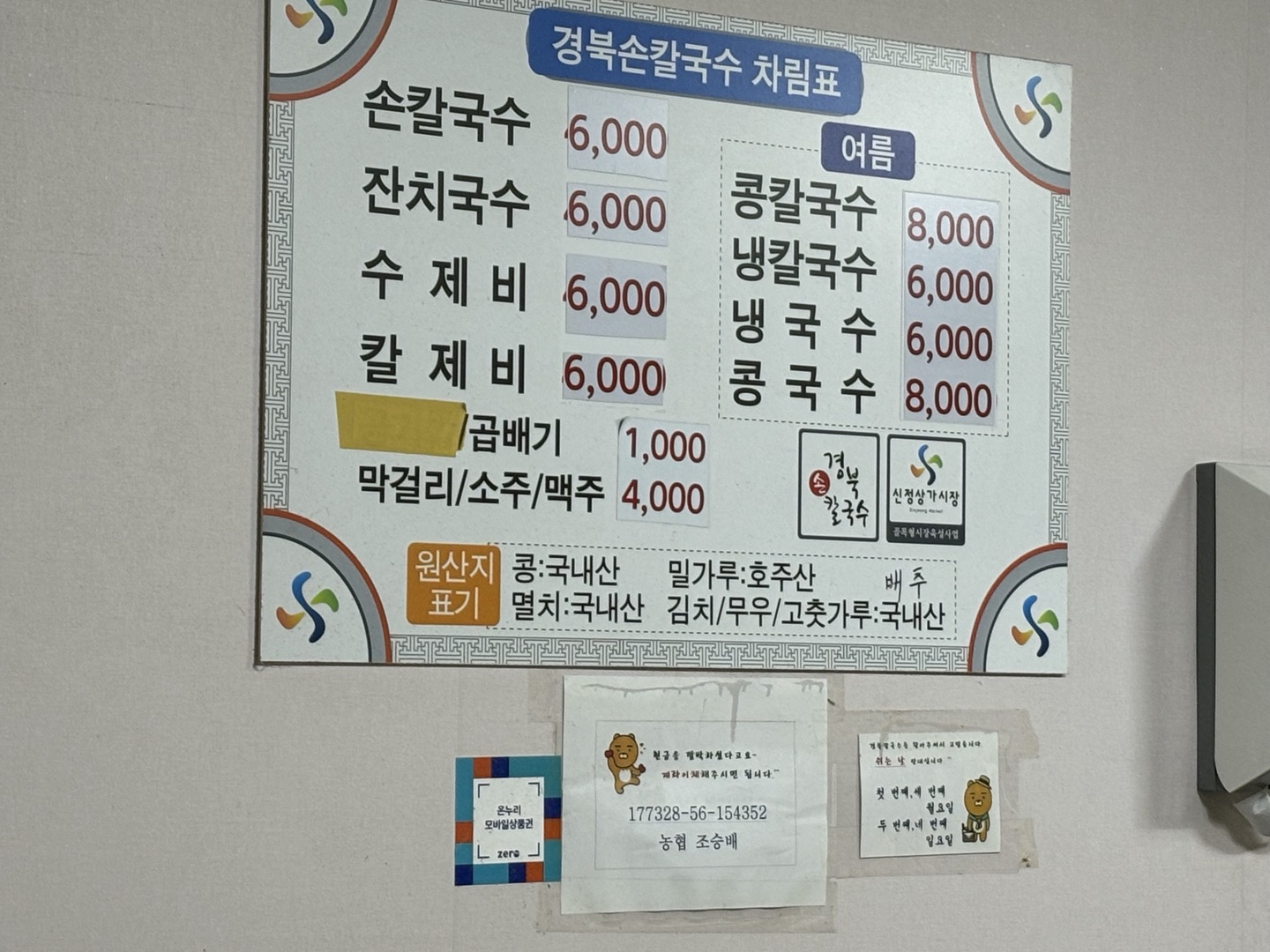 사장님 계좌번호와 쉬는 날 안내가 되어있어용