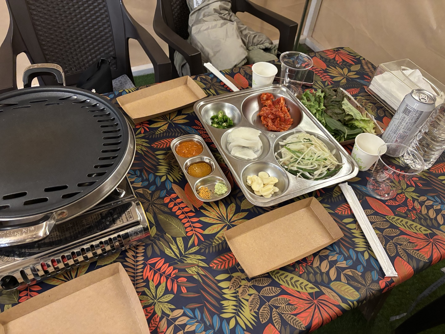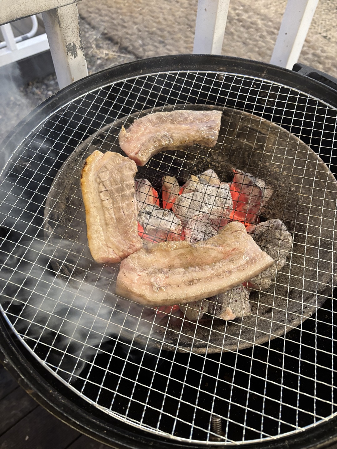 숯불에 구운 고기가 세상에서 젤 맛있는 거 같아요(+밖에서 먹는)