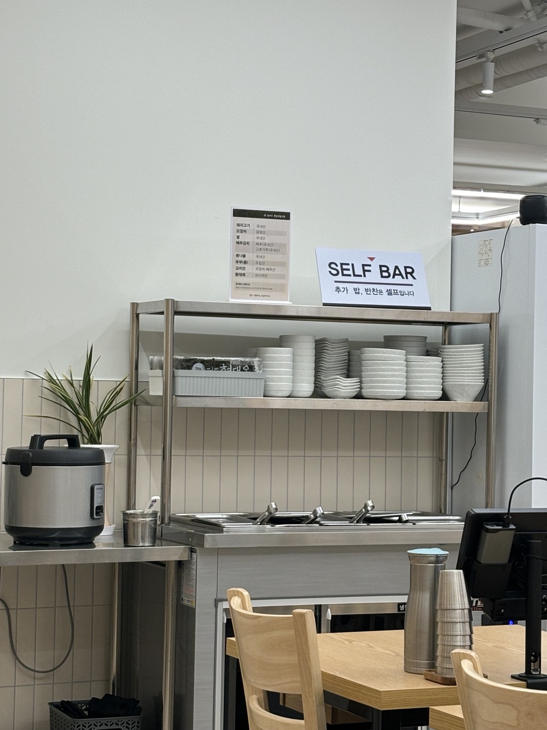 셀프바에 추가 밥과 반찬, 땡초까지 있어서
